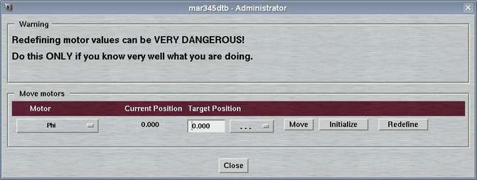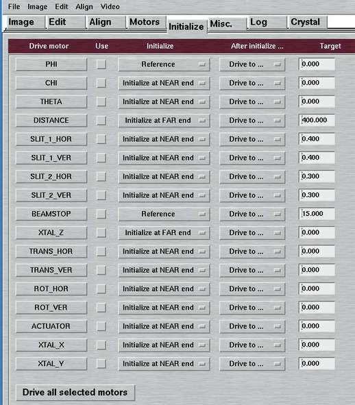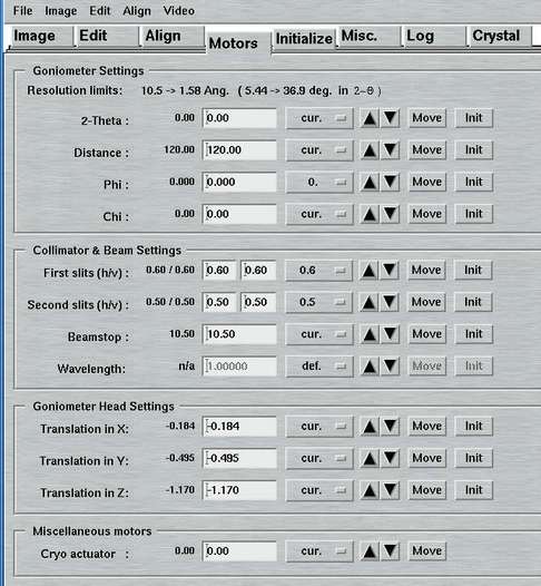 | Crystal trans. Z | Pops up the "Motors"-page in the main window | Displays current position of crystal translation along Phi-axis | |