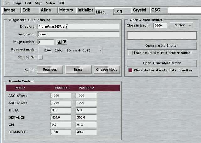 | Scanmode | Pops up the "Misc."-page in the main window | Displays current scan mode of mar345-detector | |